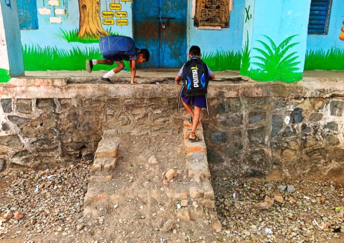 भुसावळ तालुक्यातील सिद्धेश्वर नगर येथील जिल्हा परिषद प्राथमिक शाळा, भारतरत्न डॉ. बाबासाहेब आंबेडकर आदर्श शाळा योजनेअंतर्गत येते, तिची स्थिती गंभीर आहे. शाळेतील विद्यार्थ्यांना वर्गात जाण्यासाठी पायऱ्या नसल्यामुळे रोजचं धोकादायक कसरत करावी लागते, तर शाळेतील मुतारी, शौचालय, वर्गाजवळील वरांडा आणि कंपाऊंड ही अत्यंत खराब स्थितीत आहेत.पावसाळ्यात इमारतीच्या भिंतींवर गळती होते, त्यामुळे वर्गातील परिस्थिती आणखी बिकट होते. यामुळे विद्यार्थ्यांचे शारीरिक व मानसिक आरोग्य, तसेच शिक्षणावरही नकारात्मक परिणाम होत आहे.
