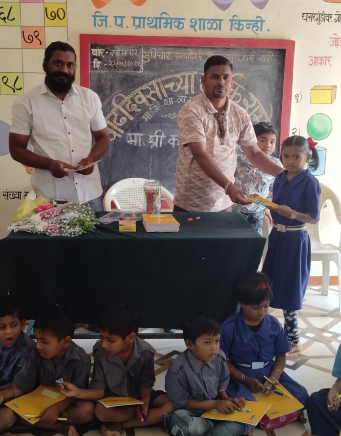 विद्यार्थीना शैक्षणिक साहित्य वाटप करून वाढदिवस साजरा