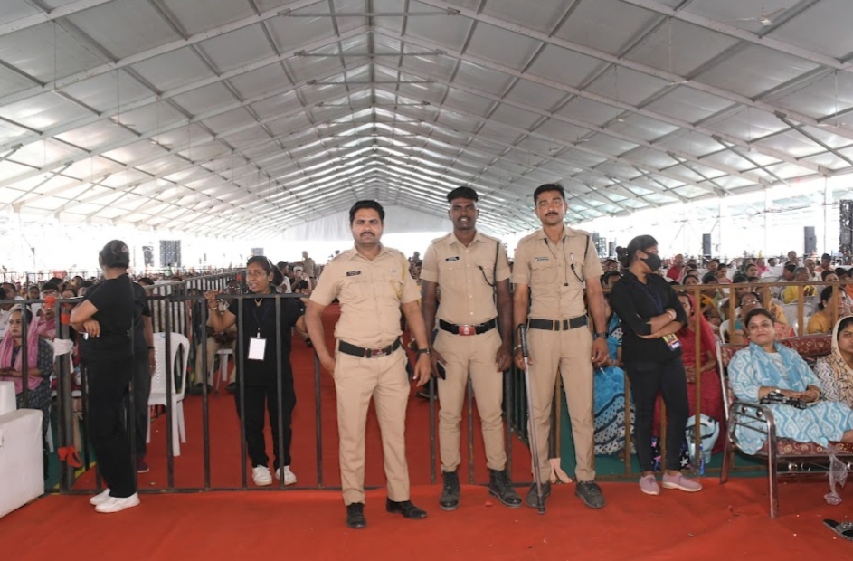 एवढ्या मोठ्या जनसमुदायावर नियंत्रण मिळवण्यासाठी पोलिस प्रशासनाने चोख नियोजन केले आहे. जळगाव रोडपासून कथास्थळापर्यंत सुमारे २०० पोलिस कर्मचारी आणि होमगार्ड तैनात करण्यात आले.फैजपूरचे डीवायएसपी अनिल बडगुजर आणि भुसावळचे केदार बारबोले यांनी कथास्थळाकडे येणाऱ्या कोणत्याही मार्गावर अडचण येऊ नये यासाठी बंदोबस्ताचे नियोजन केले. भुसावळ शहरातील गांधी पुतळ्यापासून ते तापी पुलापर्यंत ठिकठिकाणी बंदोबस्त होता.