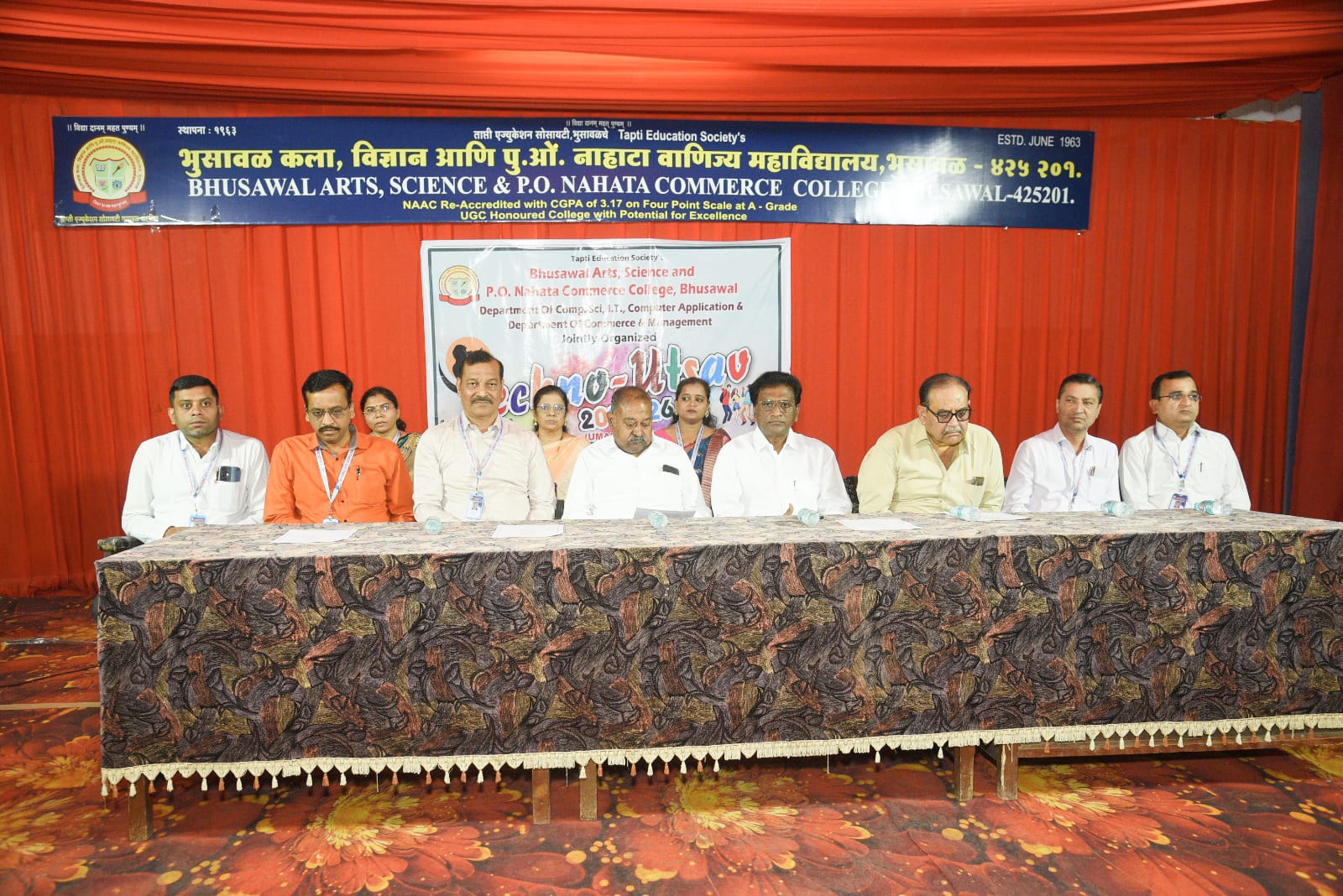 भुसावळ खानदेश लाईव्ह न्युज प्रतिनिधी कला ,विज्ञान आणि पु.ओ.नाहाटा वाणिज्य महाविद्यालय भुसावळ येथे दिनांक 12 मार्च व 13 मार्च 2026 रोजी टेक्नोत्सव या कार्यक्रमाचे आयोजन करण्यात आले. कार्यक्रमाचे उद्घाटन ताप्ती एज्युकेशन सोसायटीचे अध्यक्ष माननीय श्री मोहन भाऊ फालक, चेअरमन माननीय श्री महेश भाऊ फालक, खजिनदार माननीय श्री संजयजी नाहाटा यांच्या हस्ते करण्यात आले. व्यासपीठावर महाविद्यालयाचे माननीय प्राचार्य डॉ. बी.एच. बऱ्हाटे, उपप्राचार्य डॉ जी आर वाणी, उपप्राचार्य डॉ डी एन पाटील, टेक्नोत्सव संयोजक प्रा हर्षल पाटील, डॉ स्वाती फालक, प्रा. स्मीता बेंडाळे हे सर्व उपस्थित होते. कार्यक्रमाचे प्रास्ताविक संयोजक प्रा स्मिता बेंडाळे यांनी केले. महाविद्यालयाचे प्राचार्य डॉ.बी एच बऱ्हाटे सर यांनी सर्व विद्यार्थ्यांना टेक्नोत्सव कार्यक्रमाचे महत्व् व्यक्त केले यानंतर कार्यक्रमाचे अध्यक्ष माननीय मोहन भाऊ फालक यांनी अध्यक्षीय मनोगत व्यक्त केले आणि विद्यार्थ्यांना प्रोत्साहित केले. कार्यक्रमाचे आभार प्रदर्शन वाणिज्य व व्यवस्थापन विभागाचे विभाग प्रमुख डॉ.ममता पाटील यांनी केले टेक्नोत्सव अंतर्गत हॅकेथॉन, पोस्टर प्रेसेंटेशन, क्विज कॉम्पिटिशन, ट्रेजरहंट, फूड अँड फन फेस्ट, डान्स, सिंगिंग व फॅशन शो अशा विविध स्पर्धांचे आयोजन करण्यात आले. प्रत्येक स्पर्धेचे आयोजन विविध विद्यार्थ्यांनी केले. या स्पर्धा विद्यार्थ्यांच्या स्किल डेव्हलपमेंट साठी आयोजित करण्यात आल्या. विविध स्पर्धांमध्ये विजेते विद्यार्थ्यांची नावे:
