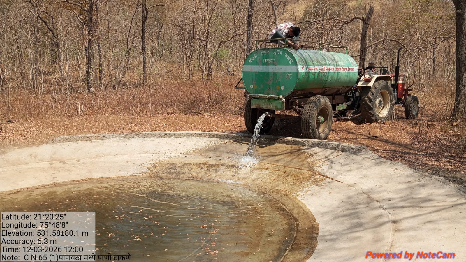 *छायाचित्र:-* पाल ता रावेर सातपुड्याच्या जंगलात टँकर द्वारे कुत्रिम पानवठयात पाणी भरणारे टँकर.