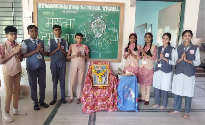 आज दि.११ रोजी यावल येथील व्यास शिक्षण मंडळ संचालित जे.टी.महाजन इंग्लिश स्कूल येथे महात्मा ज्योतिबा फुले जयंती साजरी करण्यात आली.