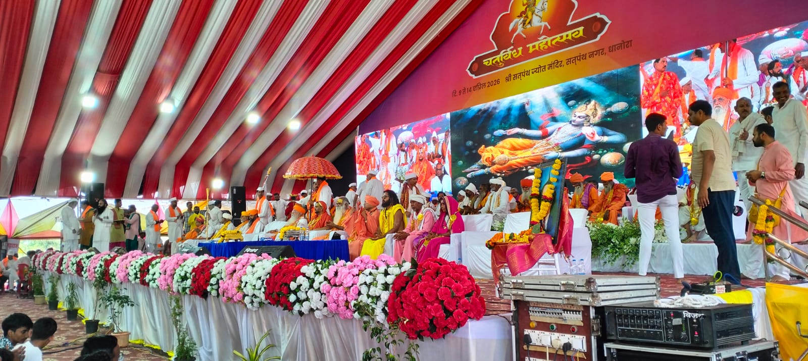 दिनांक ९ एप्रिल ते १४ एप्रिल दरम्यान धानोरा येथील श्री निष्कलंक भगवान प्राणप्रतिष्ठा सोहळा चतुर्विद महोत्सवात आज झालेल्या भव्य संत संमेलनात उपस्थित संत महंतांच्या हस्ते भारतरत्न डॉक्टर बाबासाहेब