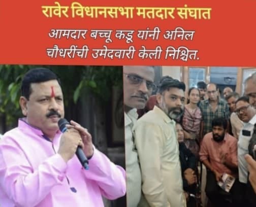 रावेर विधानसभा मतदारसंघात आमदार बच्चू कडू यांनी अनिल चौधरी यांची उमेदवारी निश्चित असल्याचे जाहीर केल्याने गेल्या निवडणुकीत अनिल चौधरी यांनी मिळविलेल्या मतदानाची आकडेवारी आणि त्यांचा वाढता जनसंपर्क लक्षात घेता रावेर विधानसभा मतदार संघात निवडणुक रिंगणात येणाऱ्या राजकीय पक्षाच्या उमेदवारांना चांगलीच राजकीय कसरत करावी लागणार असल्याचे संपूर्ण रावेर विधानसभा मतदारसंघात सर्व स्तरात चर्चिले जात आहे.